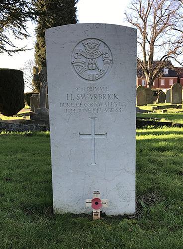 - In memory of Private Harry Swarbrick, 9961, 1st Bn., Duke of Cornwall’s Light Infantry Regiment who died on 11 June 1917 Age 23