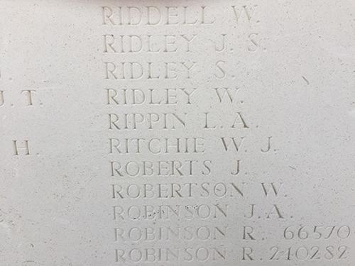 - In memory of Private Lionel Arthur Rippin, 66411,1st/6th Bn., Northumberland Fusiliers who died on 11 April 1918